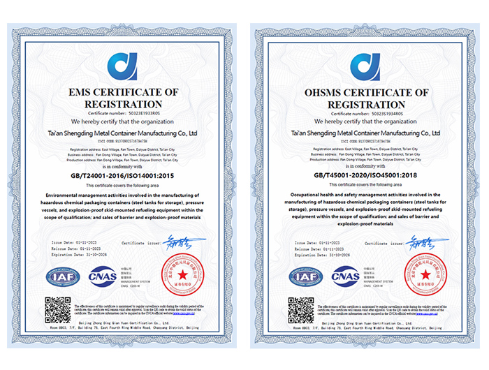Production License for Hazardous Chemical Storage Tanks: All enterprises producing hazardous chemical storage tanks must obtain a production license. This certificate is issued by the government after reviewing the factory.